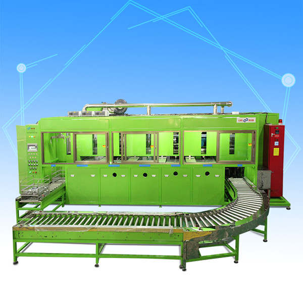 全自動真空過程由PLC自動控制,設(shè)備生產(chǎn)主線由2個真空脫氣超聲波清洗,1個強力真空超聲波洗, 2個蒸汽洗+真空干燥組成,其工作原理是利用超聲波滲透力強的機械震動力沖擊工件表面并結(jié)合碳?xì)淝逑磩┑幕瘜W(xué)去污作用,在真空狀態(tài)下進行全面清洗,使工件表面和盲孔、狹縫干凈。